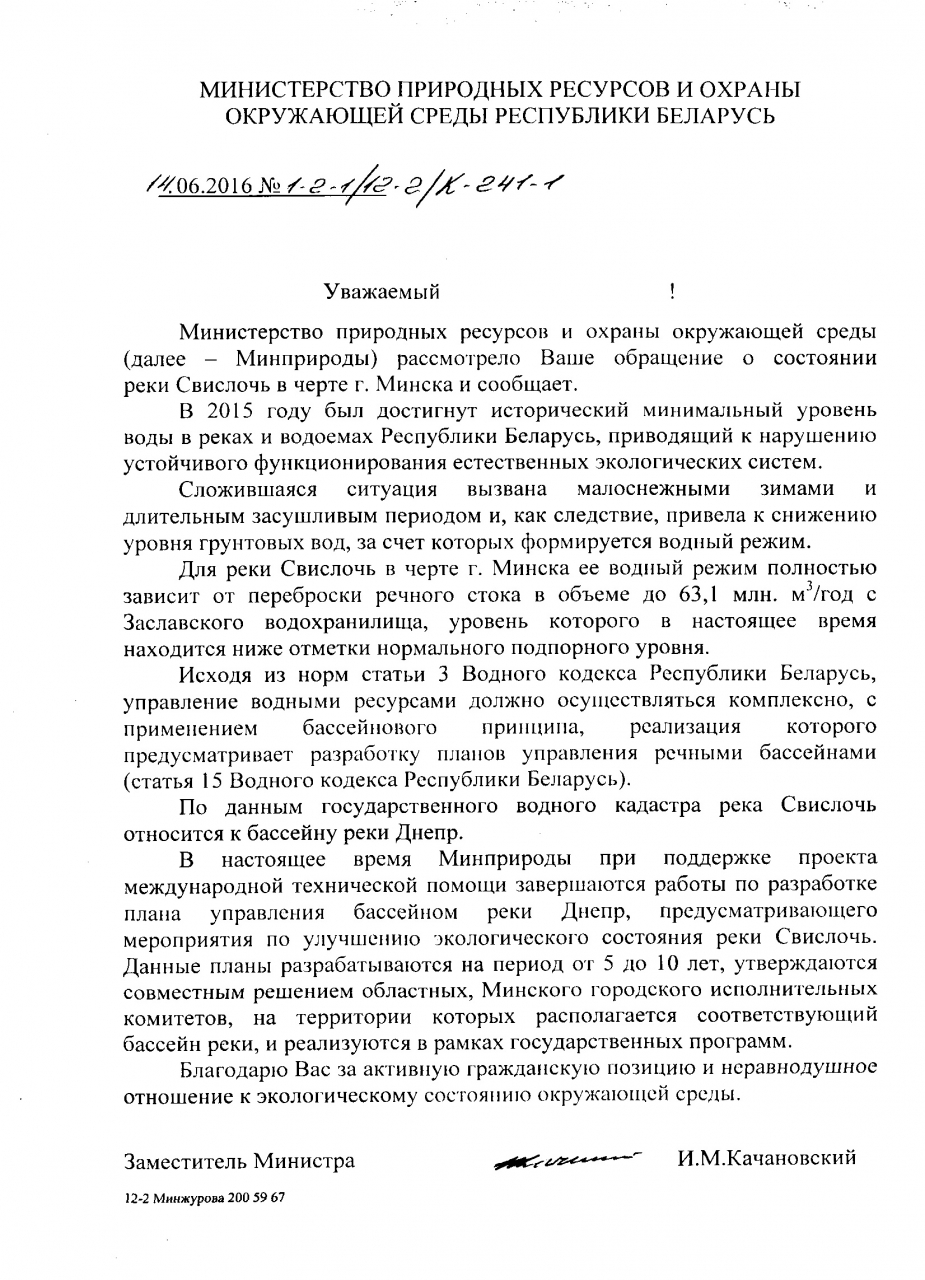 В настоящее время ведётся разработка плана таких мер, которые направлены и на улучшение экологического состояния Свислочи.