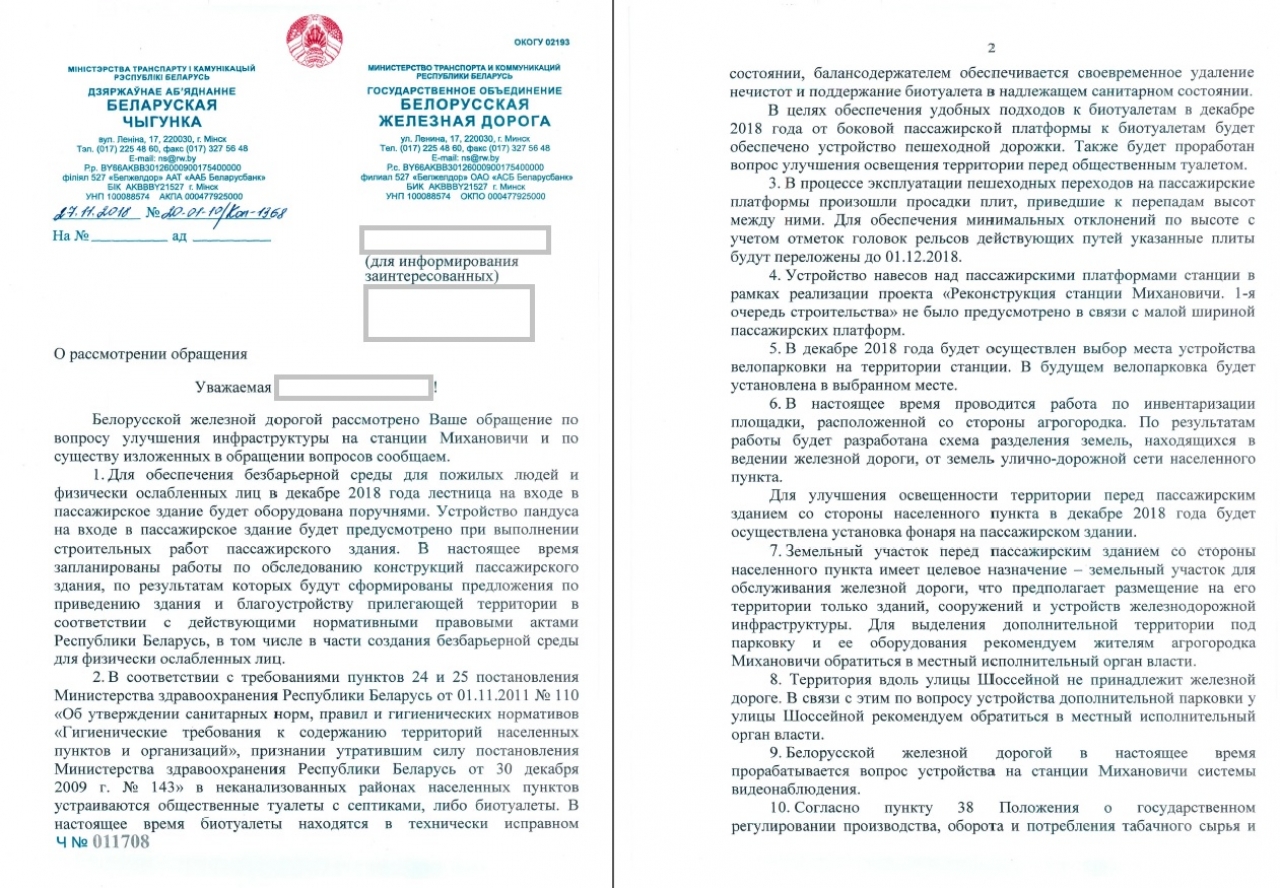 Вот перечень улучшений, которые мы бы хотели увидеть на железнодорожной станции Михановичи: