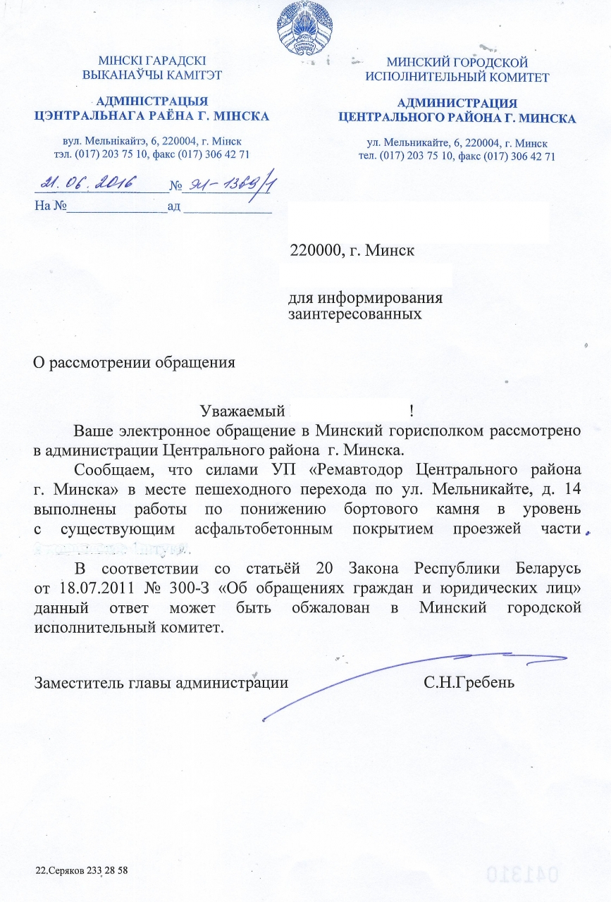 Возле дома №14 по ул.Мельникайте имеется нарушение указанной нормы: в месте пересечения тротуара с проезжей частью высота бордюрного камня составляет около 10 см.