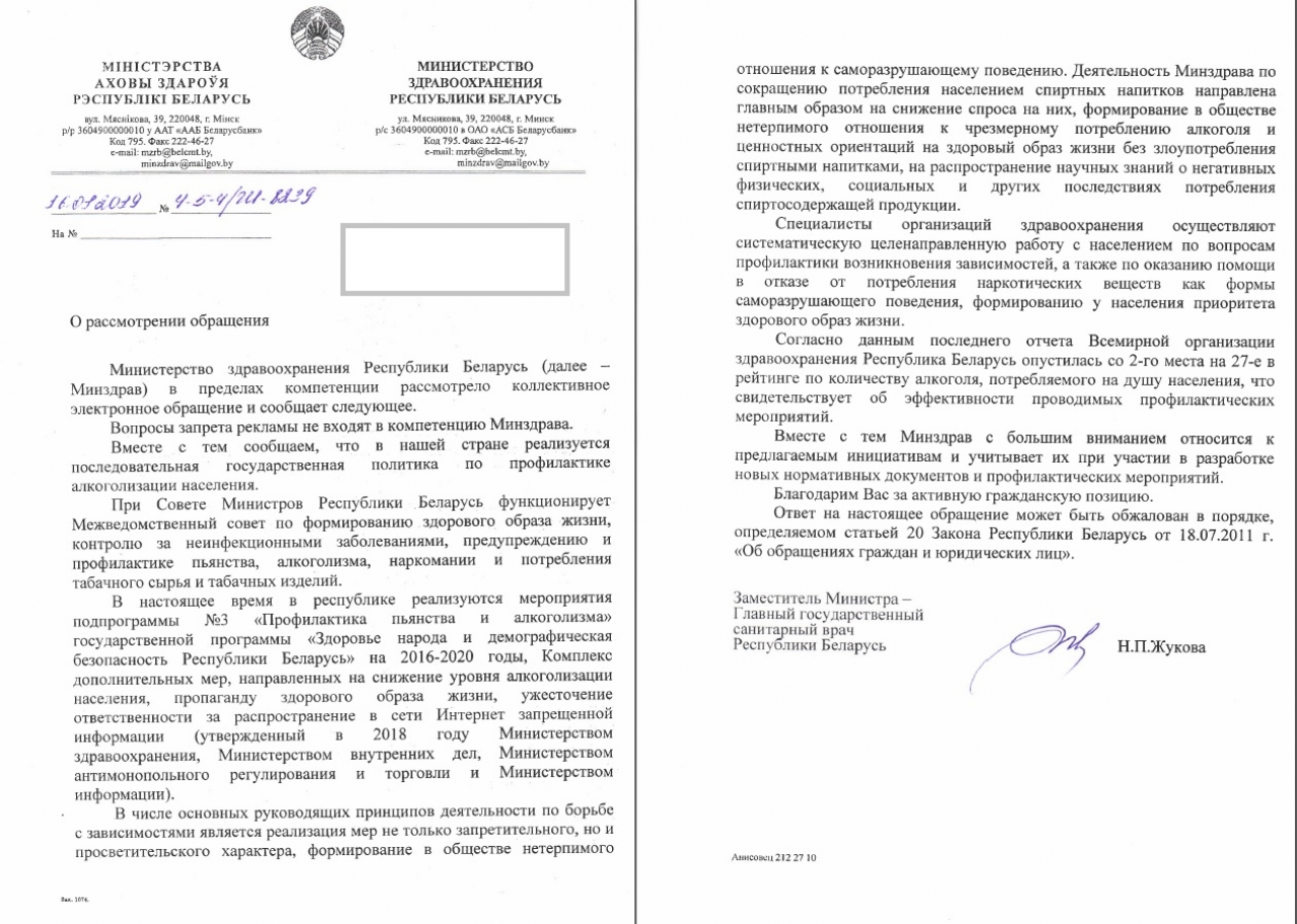принять меры по запрету всевозможной рекламы алкогольной продукции, что будет минимальным шагом на пути к оздоровлению нации, а также запретить пропаганду распития спиртных напитков, как обязательный атрибут времяпрепровождения, поскольку это открытая пропаганда самого опасного наркотического вещества, находящегося в свободной продаже.