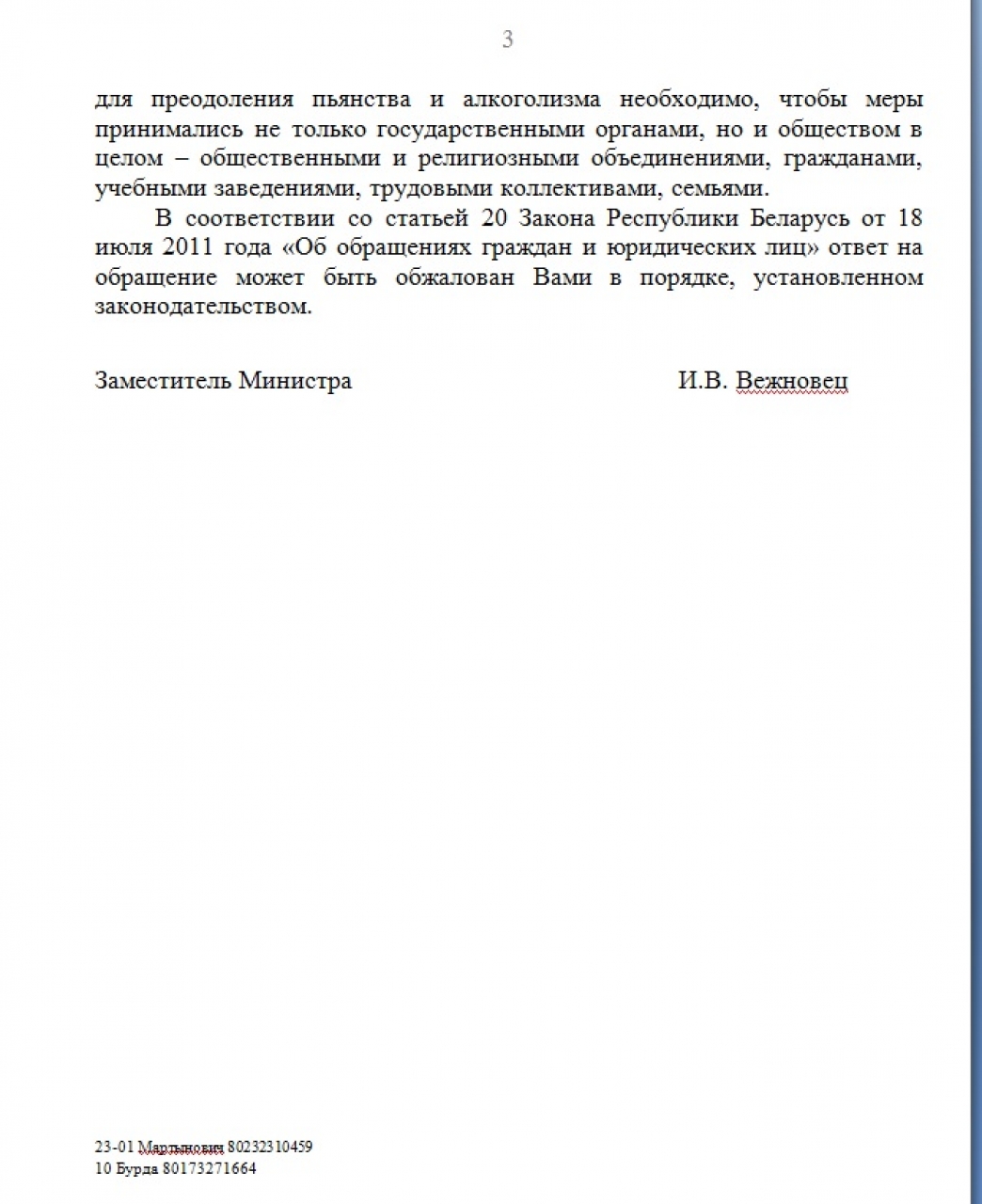 В связи с вышеизложенным и неэффективностью, на наш взгляд, прочих проводимых в сфере снижения алкоголизации населения мероприятий, просим: