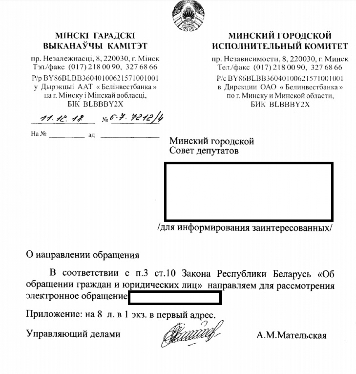 В связи с этим и на основании статьи 41 Закона «О местном управлении и самоуправлении», которая устанавливает, что исполкомы организуют на соответствующей территории строительство, реконструкцию, ремонт и содержание местных автомобильных дорог, организуют работу по благоустройству территорий населенных пунктов, повторно просим в соответствии с компетенцией: