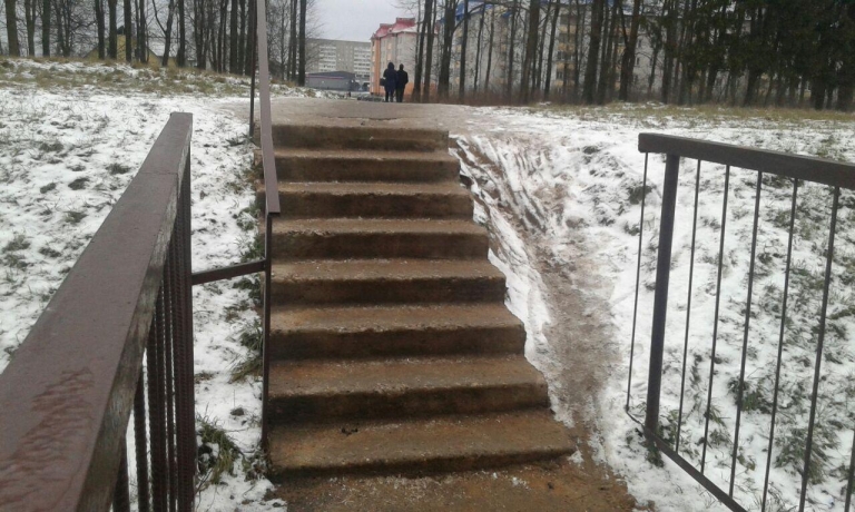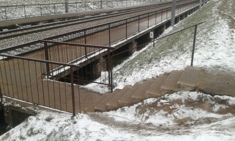 1. Узкие проходы на платформы в виде крутых, избитых лестниц, которые не предусматривают пандуса для маломобильных граждан (это не только граждане с ограниченными возможностями и лица пенсионного возраста, но и велосипедисты, молодые семьи с колясками, граждане с крупным и тяжелым багажом). Вместо пандуса граждане вынуждены вытаптывать параллельно лестниц тропы, которые во время осадков и таяния снега подмывает, что может разрушить лестницу и подвергнуть граждан еще большему травматизму и заболеваемости, кой уровень и сейчас очень высок не смотря на то, что коммунальные службы посыпают их песком. После периодичного таяния снега всё это превращается в грязь, вредя надлежащему виду обуви наших граждан. К тому же во время очередного приезда региональной электрички происходит столпотворение, низкая пропуская способность. В такой ситуации целесообразно переосмыслить концепцию проходов полностью, сделав их более просторными, ступени длинными, широкими и конечно не забывая про пандус и хорошие поручни.
