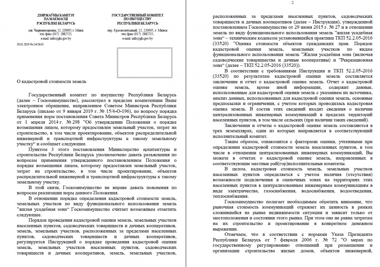 – методические рекомендации, которые выпустило Минстройархитектуры противоречат Постановлению Совета министров, так по ситуации Столбцовского района расчет стоимости, как оказалось, осуществлялся по 5 другим населенным пунктам, участки в которых выдавались до 2014 года.