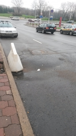 На проезжей части по пр.Победителей, 47 (дорога в сторону ул.Гвардейская) имеется огромная латка на дороге не в уровень. Непонятно зачем вырезать такой большой кусок, если ремонт проводится только возле бордюра.
