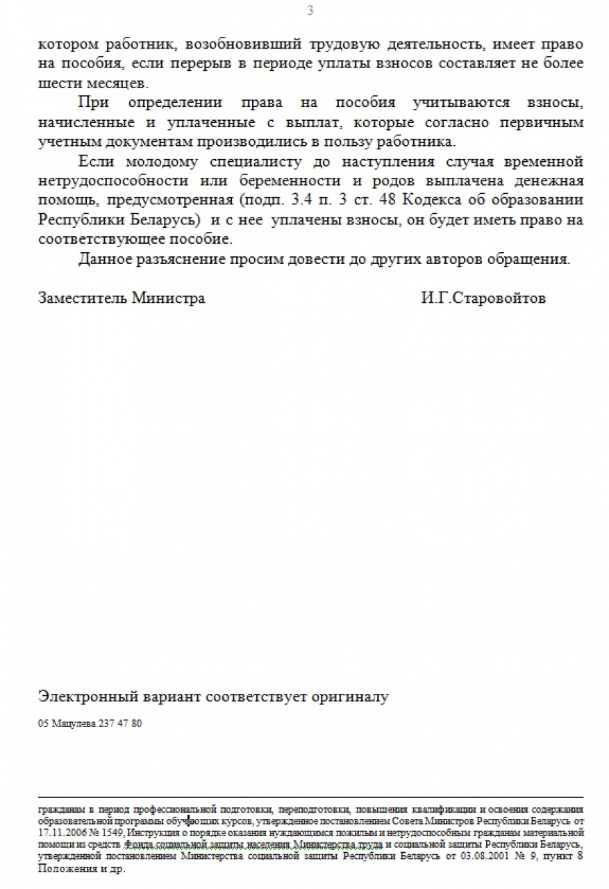 (предположительно, Капыльской и Н.В.Павлюченко – фамилия автора разъяснений в ответе ФСЗН так и не озвучена)