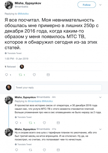 "То есть после моей жалобы мне добавили услугу «Отказ от интернет-подписки», и в то же время через полмесяца автоматически на что-то подписывают. Это такой толстый троллинг? Мне обидно не за эти 20 копеек, а за агрессивное навязывание ненужных мне услуг. Хоть я часто пользуюсь смартфоном и хорошо знаком с Android, но так и не смог побороть эту проблему.