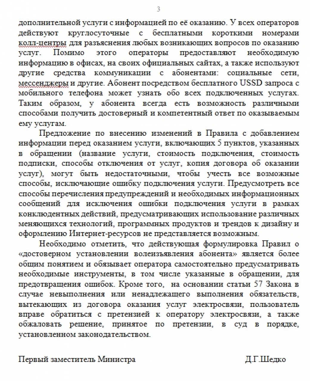 Считаем, что необходимо внести изменения в Правила оказания услуг электросвязи. В 2017 году уже были внесены изменения(http://pravo.by/novosti/novosti-pravo-by/2017/april/23734/), однако этого недостаточно.