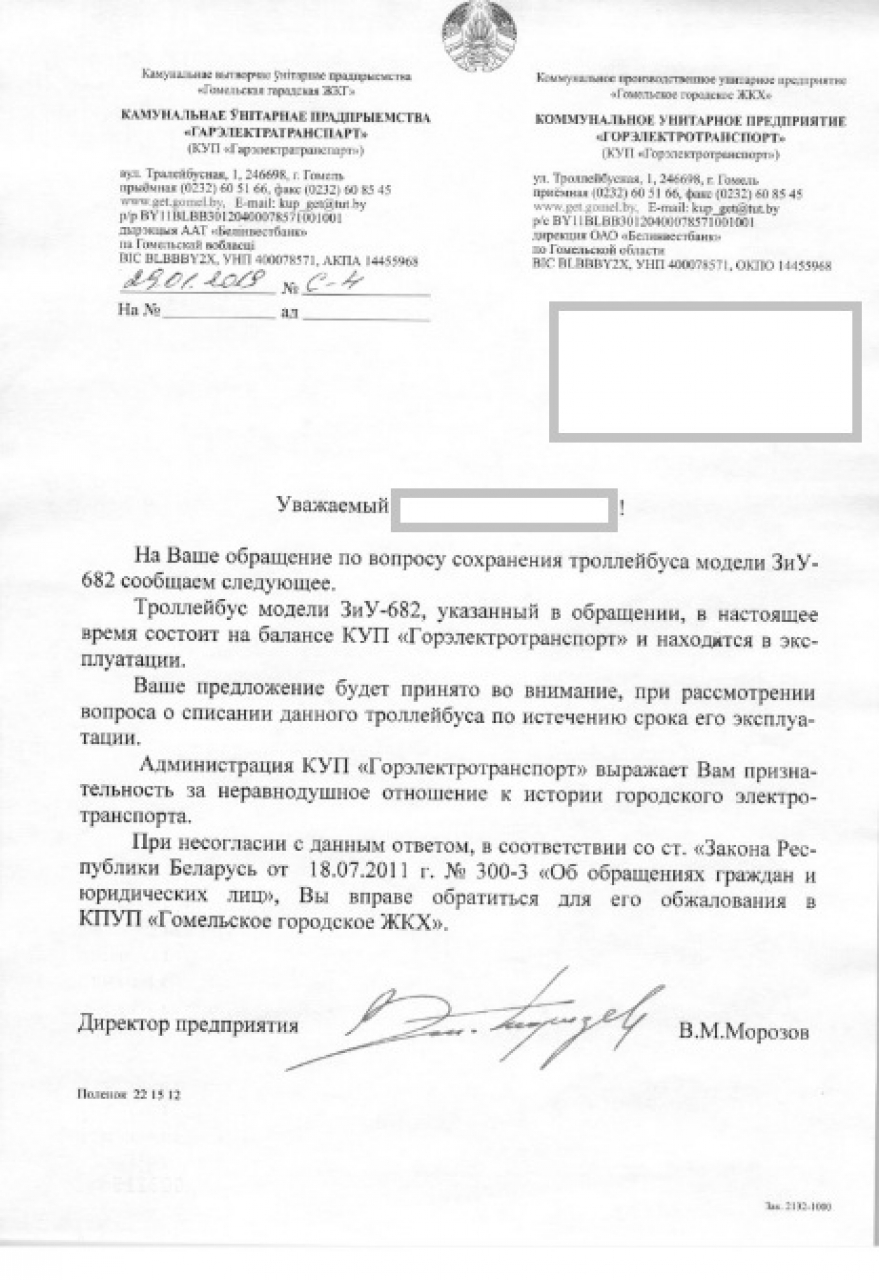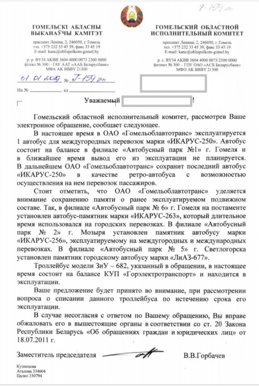 Направить в КУП "Горэлектротранспорт" и ОАО "Гомельоблавтотранс"