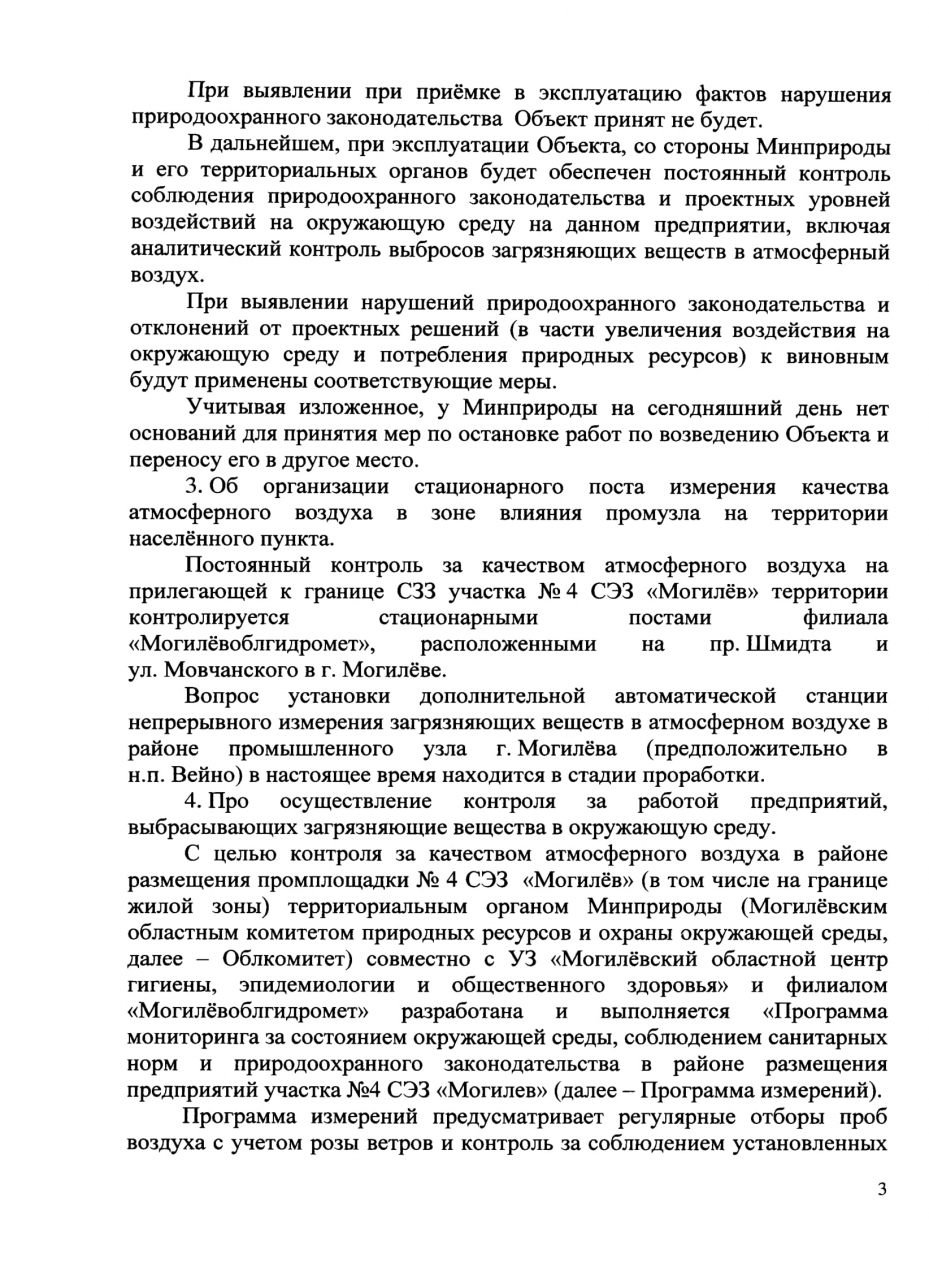 Председатель Могилёвского райисполкома Дутько А.И. «гарантировал обеспечить контроль за реализацией проектных решений и полным соответствием проектной документацией, прошедшей, в том числе и государственную экологическую экспертизу».