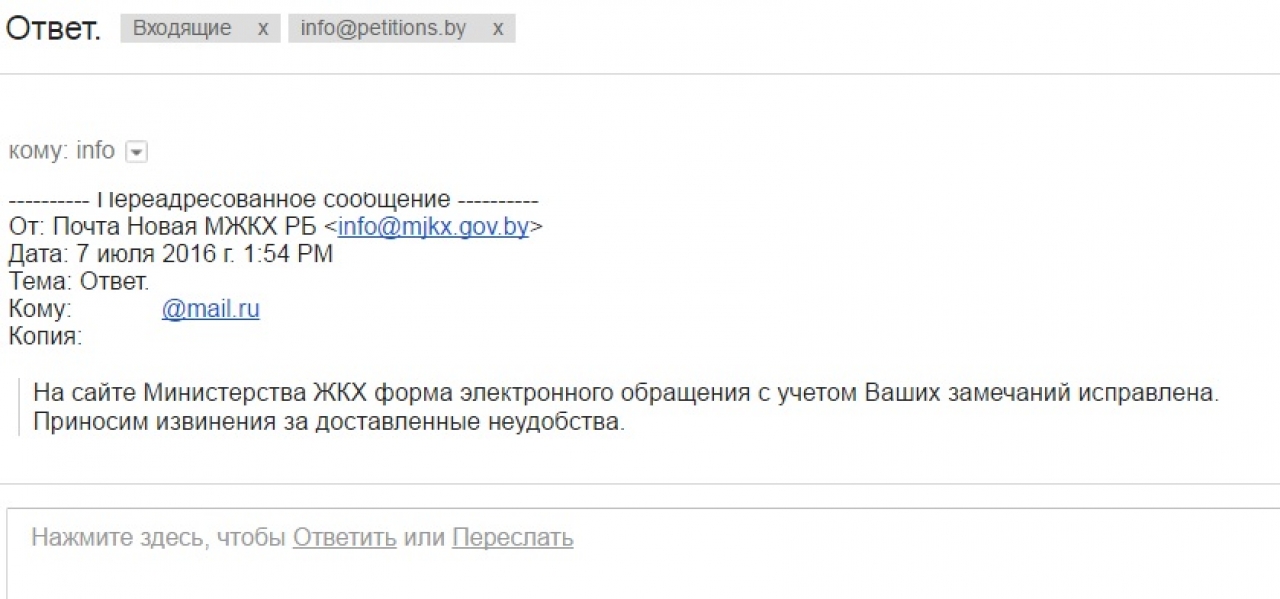 На сайте Министерства ЖКХ форма электронного обращения с учетом замечаний исправлена.