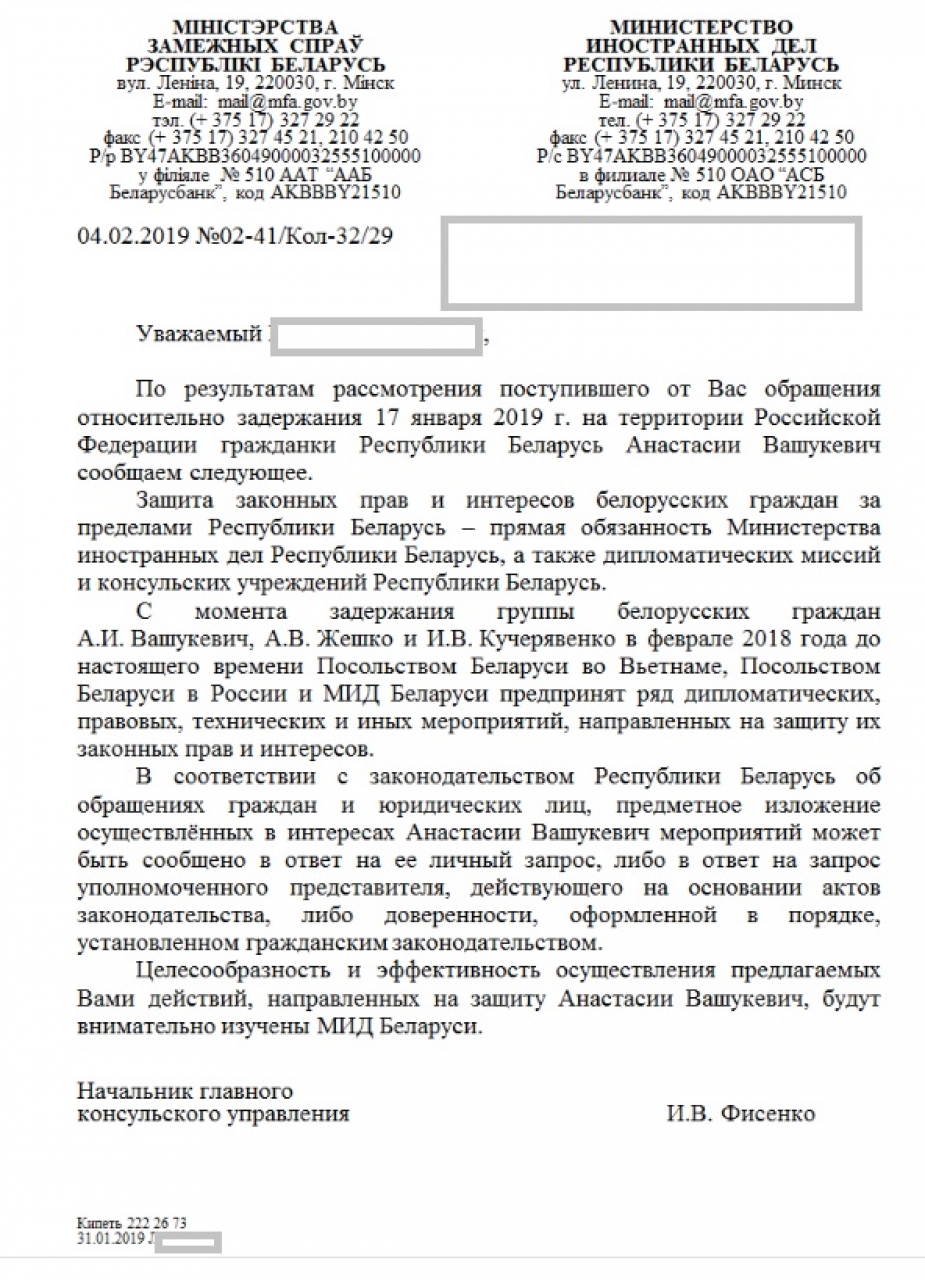 МИДом будут внимательно изучены целесообразность и эффективность предложенных действий по защите гр. Вашукевич