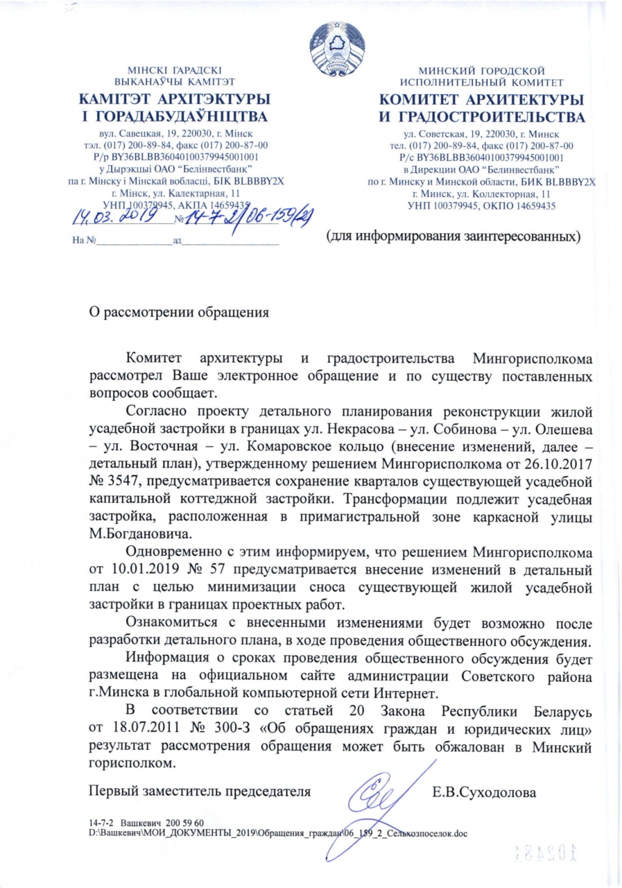 На основании ст. 41 Закона «О местном управлении и самоуправлении», которая устанавливает, что исполкомы решают вопросы размещения объектов строительства на соответствующей территории, мы, подписавшиеся под этим обращением, требуем дать ответы на вышепоставленные вопросы и ПОЛНОСТЬЮ пересмотреть генплан с ПОЛНЫМ отказом от сноса Сельхозпосёлка.