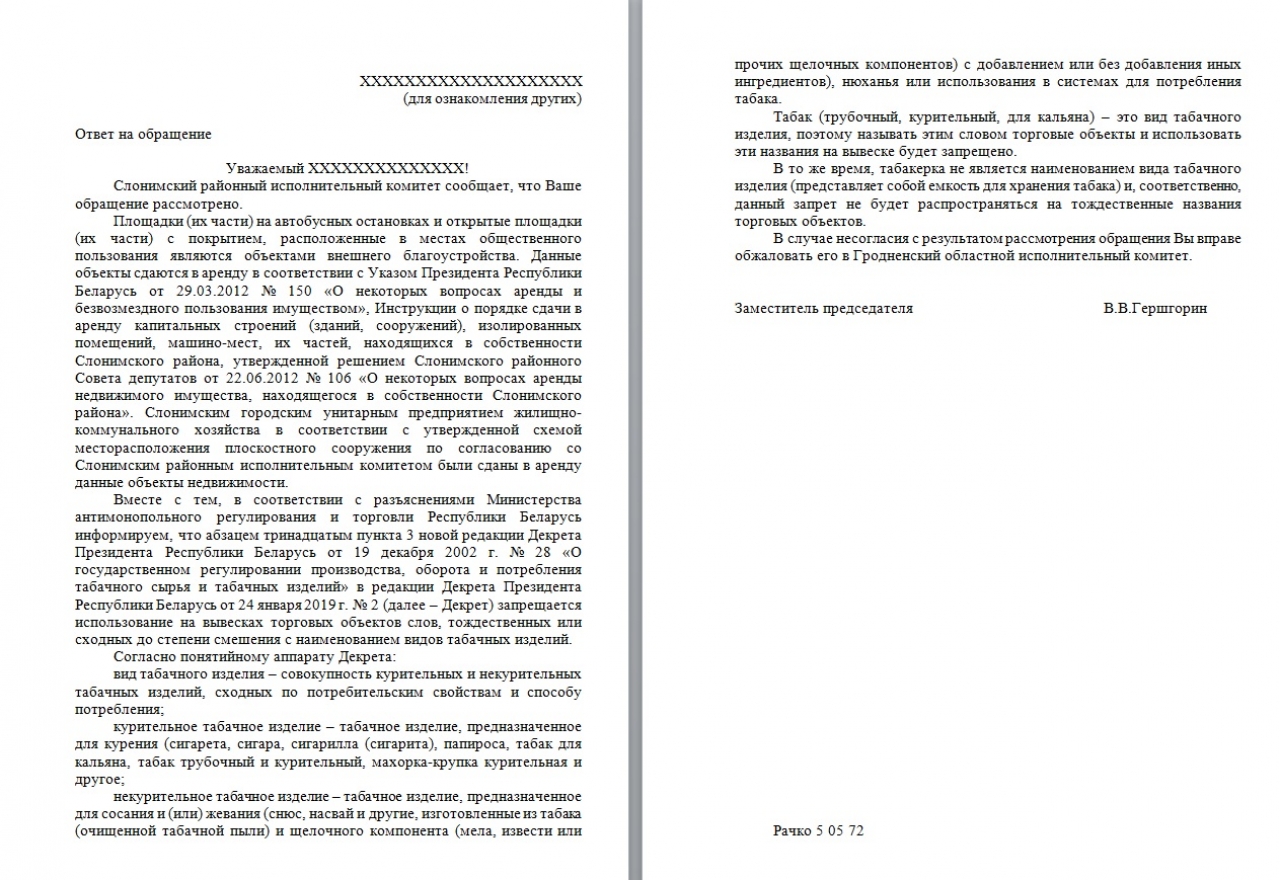 просим вас рассмотреть этот вопрос, и решить его в пользу здорового образа города, а именно принять меры, направленные на недопущение открытия и функционирования киосков «Табакерка» и «Табак» в городе Слониме, а также устранения с территории города уж имеющихся табачных киосков "Табакерка" и "Табак"