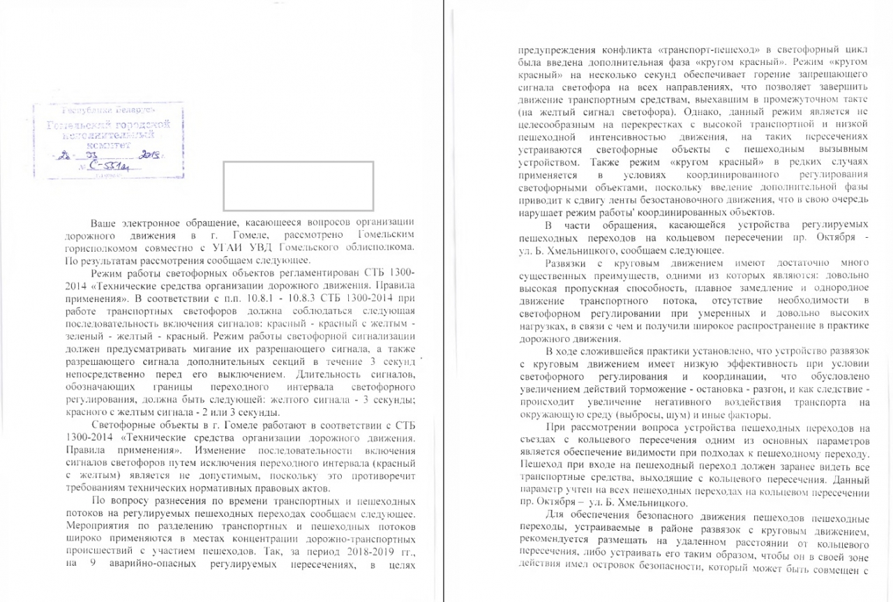 3. Оборудовать светофорами с кнопкой для пешеходов перекресток улиц прт. Октября и Б.Хмельницкого со всех сторон кольца.