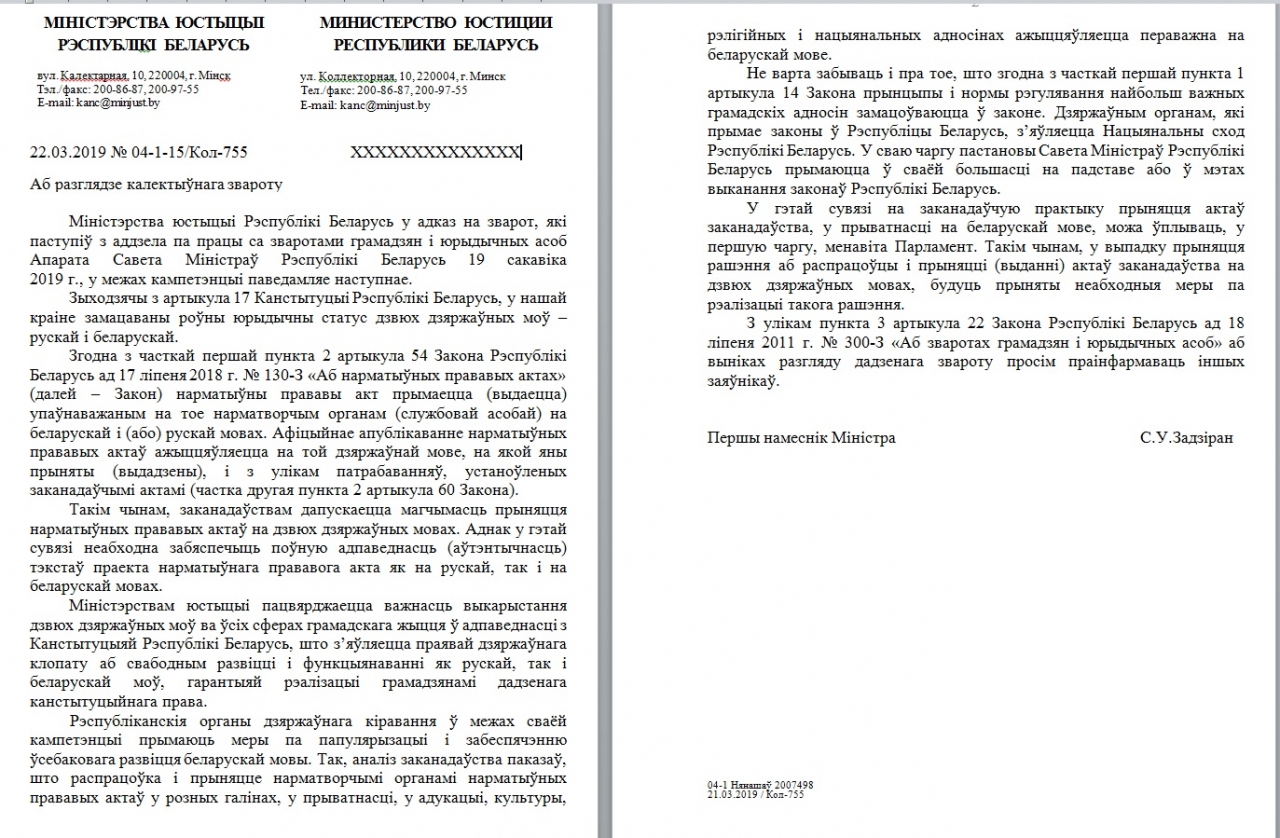 Таксама звяртаемся да Савета міністраў Рэспублікі Беларусь з прапановай на першым этапе вызначыць якія пастановы будуць прымацца і публікавацца на дзвюх мовах і пачаць рабіць гэта з 2 красавіка.
