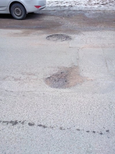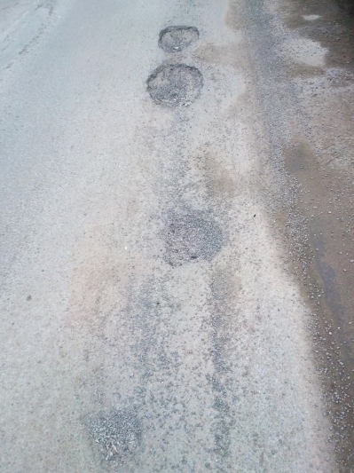В данный момент там образовалось большое количество ям (крупных более 30 на участке 430 м). Некоторые ямы глубже 10 см и достигают 30-50 см в диаметре. Количество ям и их глубина быстро растет, так как поток автомобилей утром и вечером большой.