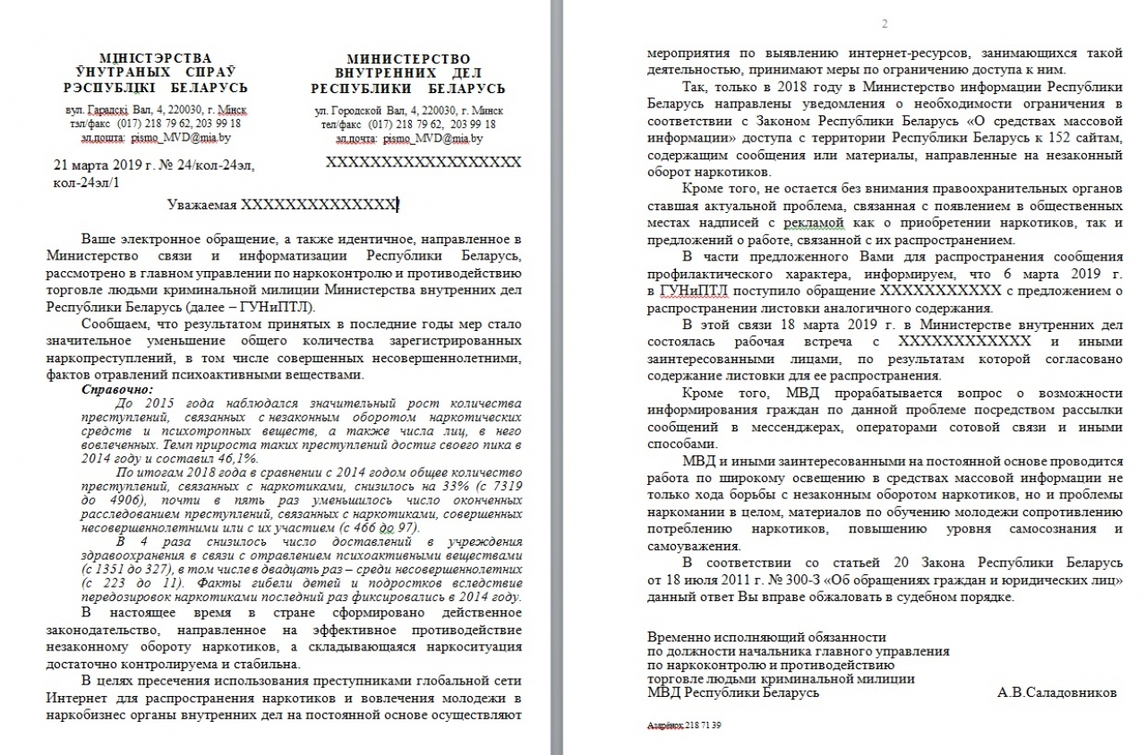 Мы, ниже подписавшиеся, в связи с тем, что методы вовлечения молодежи в наркобизнес становятся все изощреннее, настоятельно просим проинформировать население посредством смс-рассылки в мессенджерах, публикаций в СМИ и бегущей строки на ТВ следующего текста: