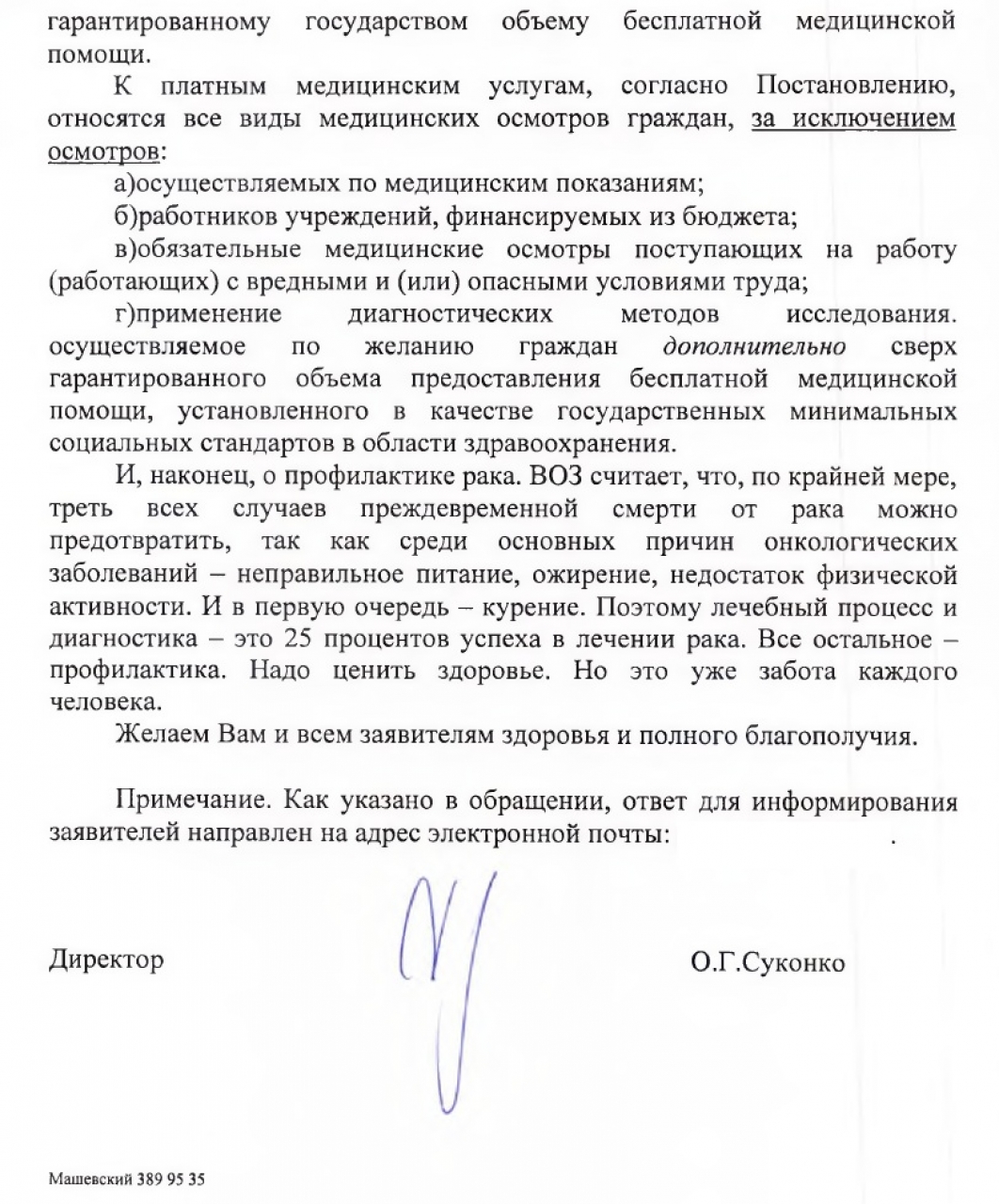 предлагаем организовать в поликлиниках (или больницах) ЕЖЕГОДНЫЕ БЕСПЛАТНЫЕ ОБСЛЕДОВАНИЯ НАСЕЛЕНИЯ ПО РАННЕМУ ВЫЯВЛЕНИЮ РАКОВЫХ ЗАБОЛЕВАНИЙ!