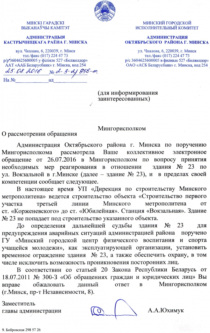 4. Снести либо сделать капитальный ремонт здания по адресу: г.Минск, ул.Вокзальная, 23.