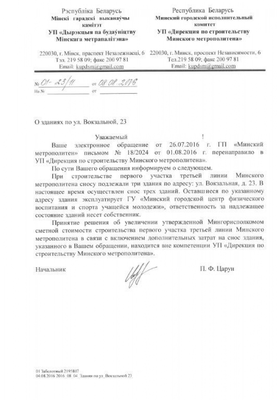 1. Когда будет снесено здание по адресу: г.Минск, ул.Вокзальная, 23.