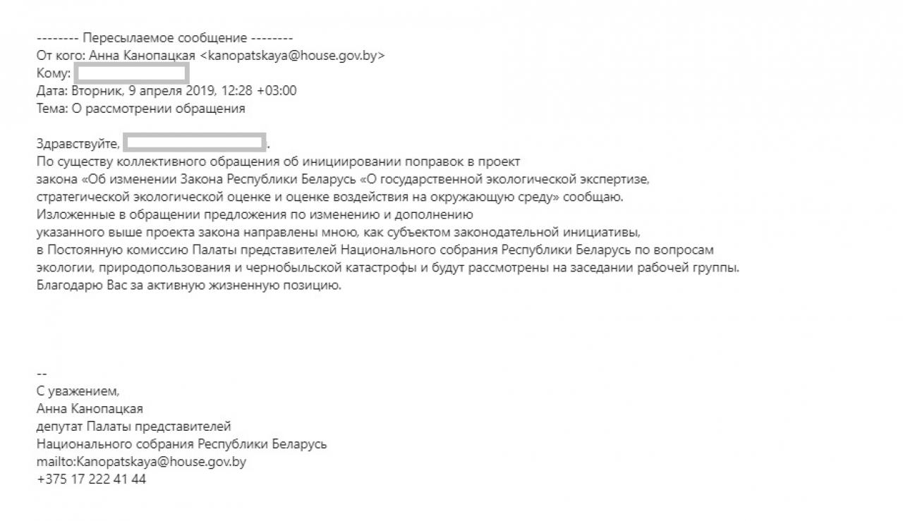 Предложения направлены в Постоянную комиссию Палаты представителей Национального собрания Республики Беларусь по вопросам экологии, природопользования и чернобыльской катастрофы и будут рассмотрены на заседании рабочей группы.