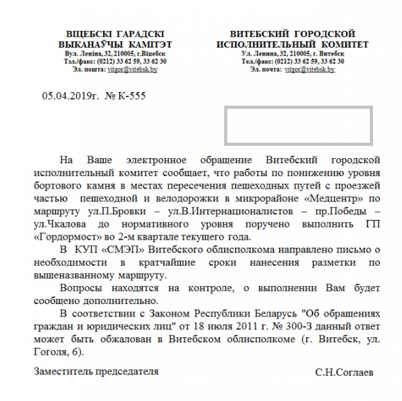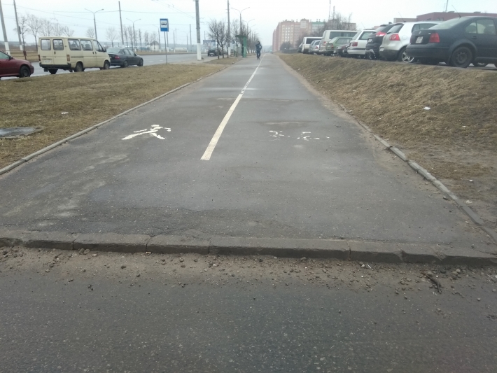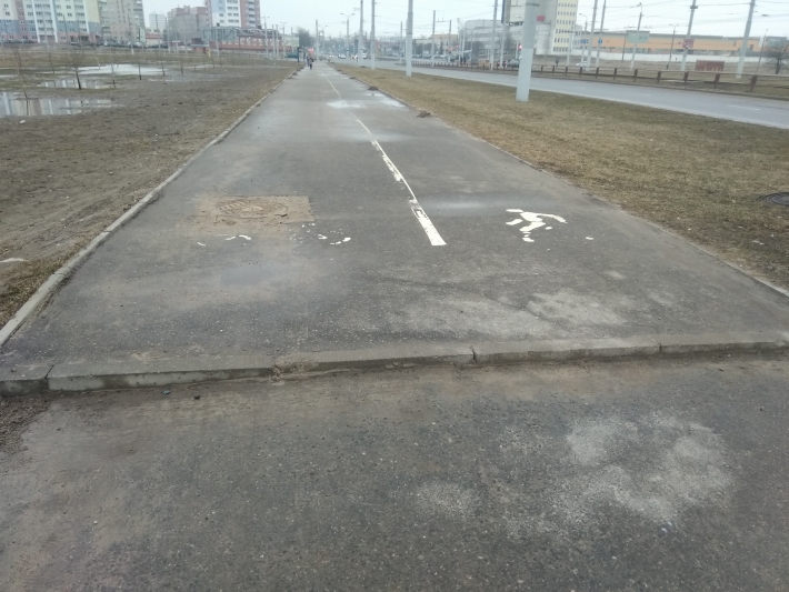 привести в порядок велосипедную и пешеходную дорожку в микрорайоне "Медцентр" по маршруту ул.П.Бровки - ул.В.Интернационалистов - пр.Победы - ул.Чкалова в соответствии с ТКП 45-3.03-227-2010 "Улицы населённых пунктов".