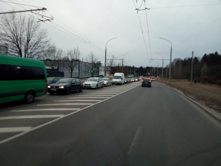 Светофор работает нормально. Пропускная способность уменьшена в связи с неправильной парковкой в правой полосе. ГАИ усилит контроль за нарушителями.