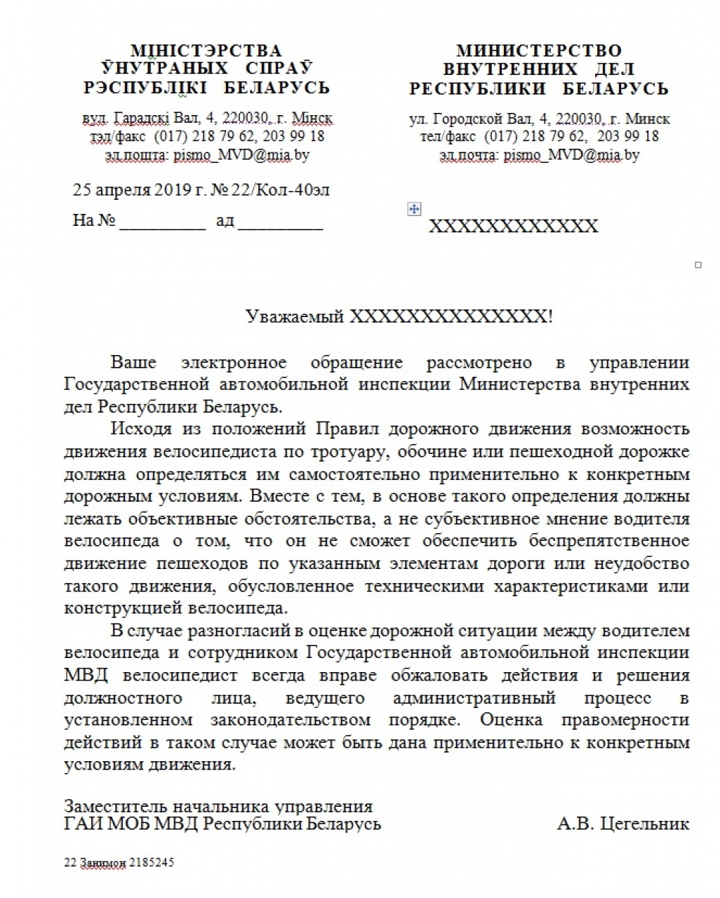 На основании Положения о Министерстве внутренних дел Республики Беларусь, утвержденного Указом Президента Республики Беларусь от 04.12.2007 N 611, которое устанавливает, что МВД в пределах своей компетенции и в соответствии с законодательством обобщает практику применения законов и иных нормативных правовых актов, разрабатывает предложения по их совершенствованию, организует и осуществляет контроль за соблюдением законодательства в области дорожного движения и обеспечения его безопасности, просим разработать предложения по правовому урегулированию этой ситуации.