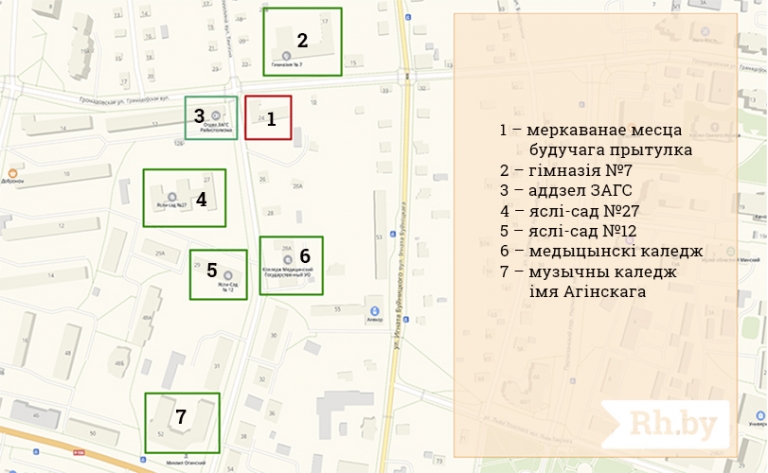 Однако Центр расположен в непосредственной близости от ГУО «Гимназия №7 г. Молодечно» и ГУО «Ясли-сад №27 г. Молодечно», что является, на наш взгляд, недопустимым и опасным. Количество вышеперечисленных лиц в районе школы и детского сада резко возрастет и они будут находиться ежедневно в поле зрения детей.
