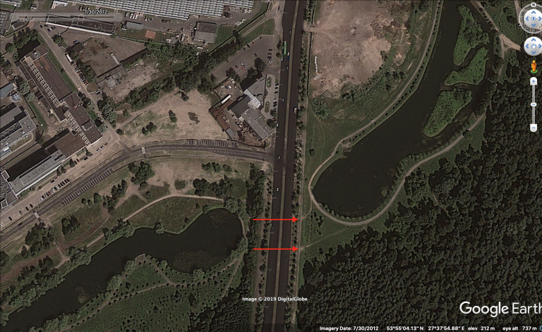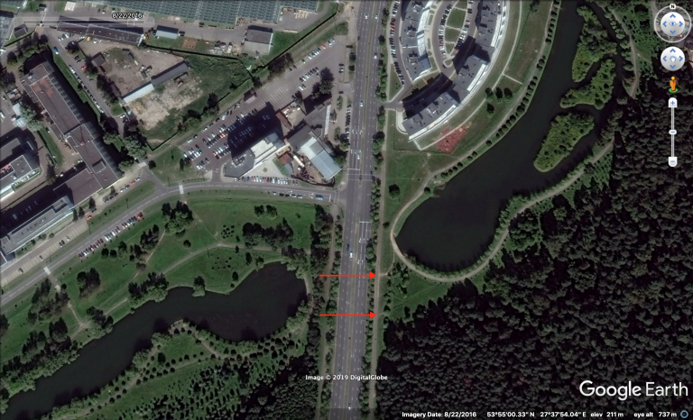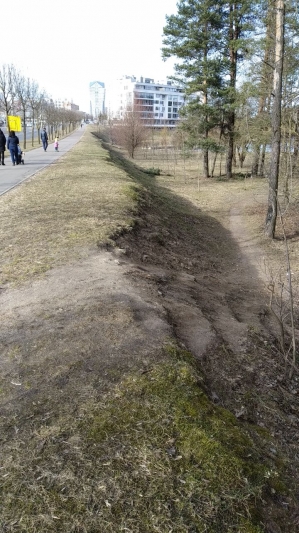 На основании ст. 41 Закона Республики Беларусь "О местном управлении и самоуправлении", которая устанавливает, что исполкомы осуществляют благоустройство подведомственных им территорий, просим рассмотреть возможность оборудования данного спуска ступеньками.