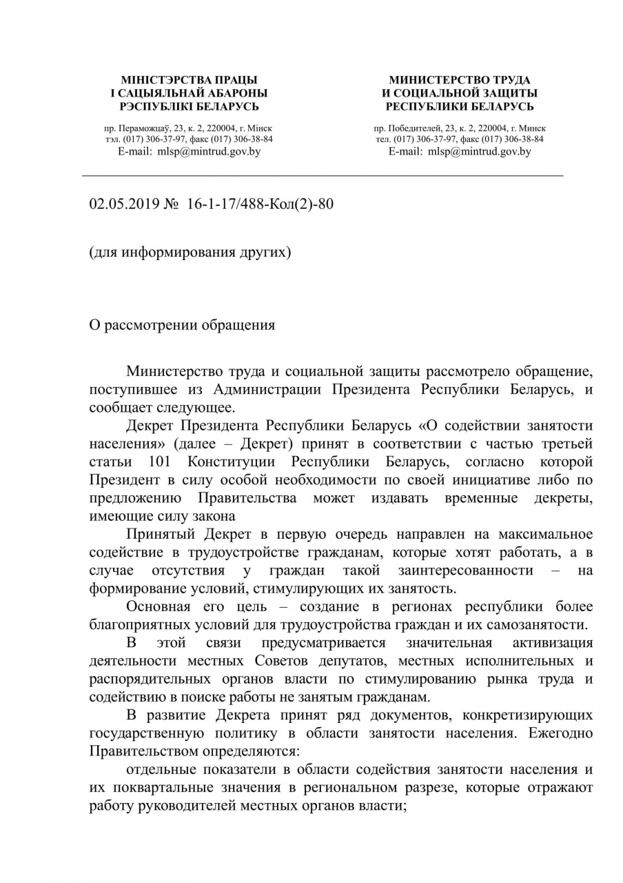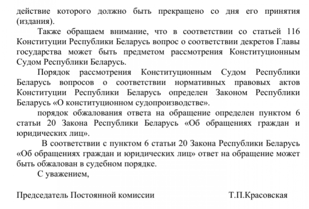 Исходя из данных статей, просим отменить данный декрет, так как он, по нашему мнению, противоречит основному закону нашей страны - Конституции.