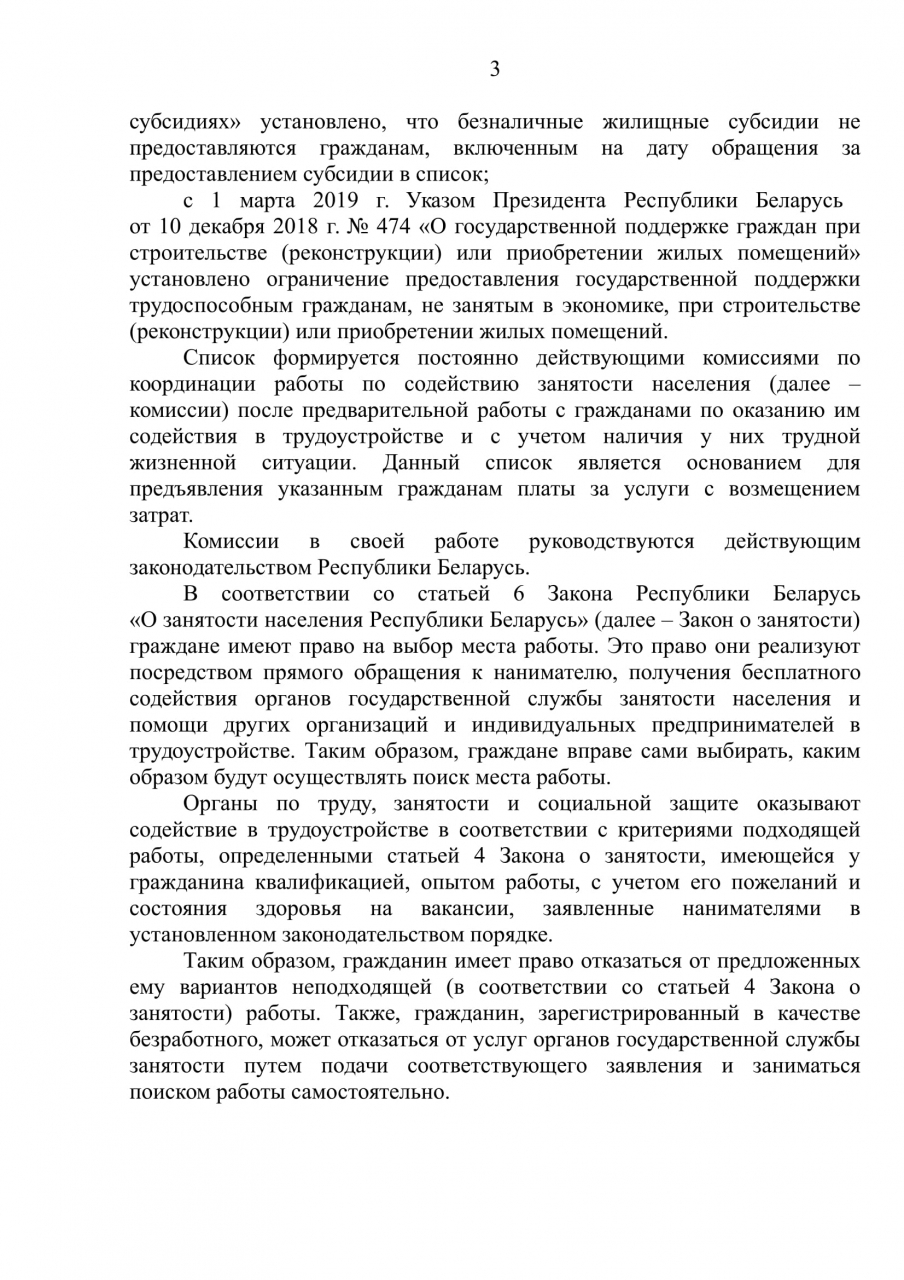 25 января 2018 года в Беларуси вступил в силу Декрет №1 "Об изменении Декрета Президента Республики Беларусь", согласно которому внесены изменения в Декрет от 02.04.2015 №3 «О содействии занятости населения».