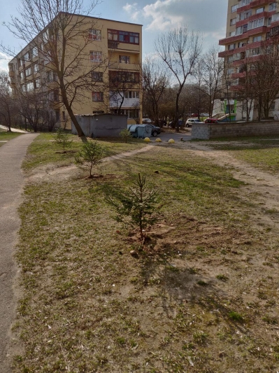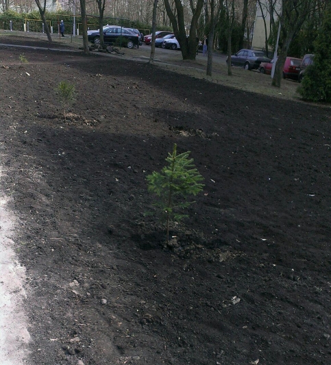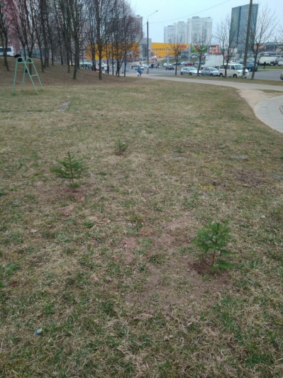 В апреле 2019г. проводится массовая посадка деревьев в городах: на улицах Минска массово высажены саженцы Ели Обыкновенной, в том числе и на дворовых территориях.