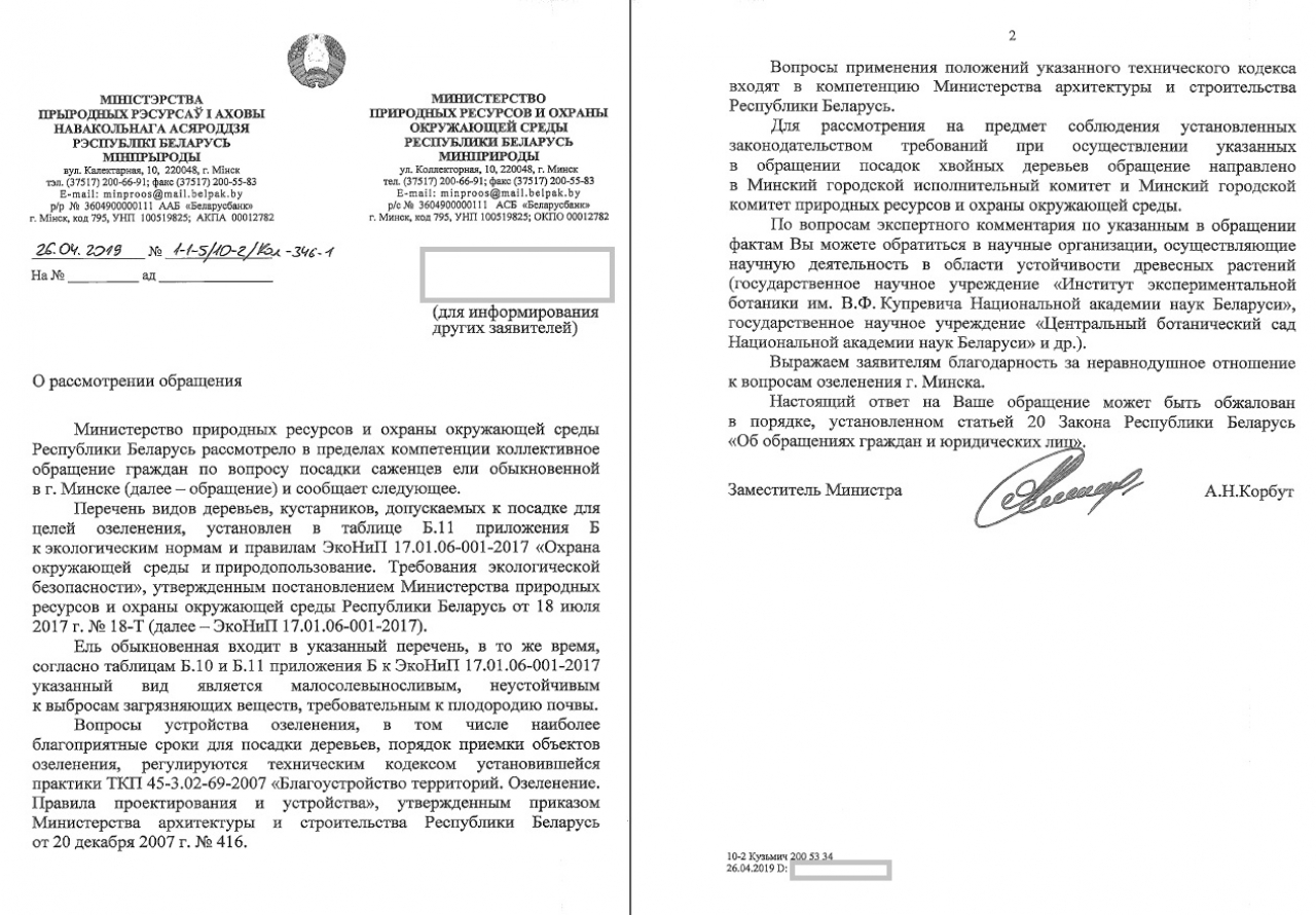 Главная задача Министерства природных ресурсов и охраны окружающей среды -- контроль охраны окружающей среды и рациональное использование природными ресурсами (постановление Совета Министров Республики Беларусь от 20.06.2013 N 503), в связи с чем просим: