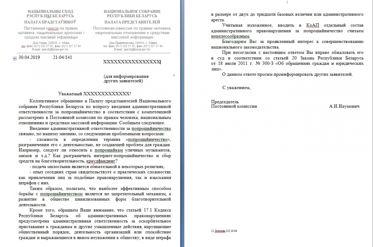 Просим обратить внимание что такая форма активности вышеназванных лиц, по нашему мнению, способствует развитию иждивенчества, стремлению жить за счёт общества и к паразитарному существованию.