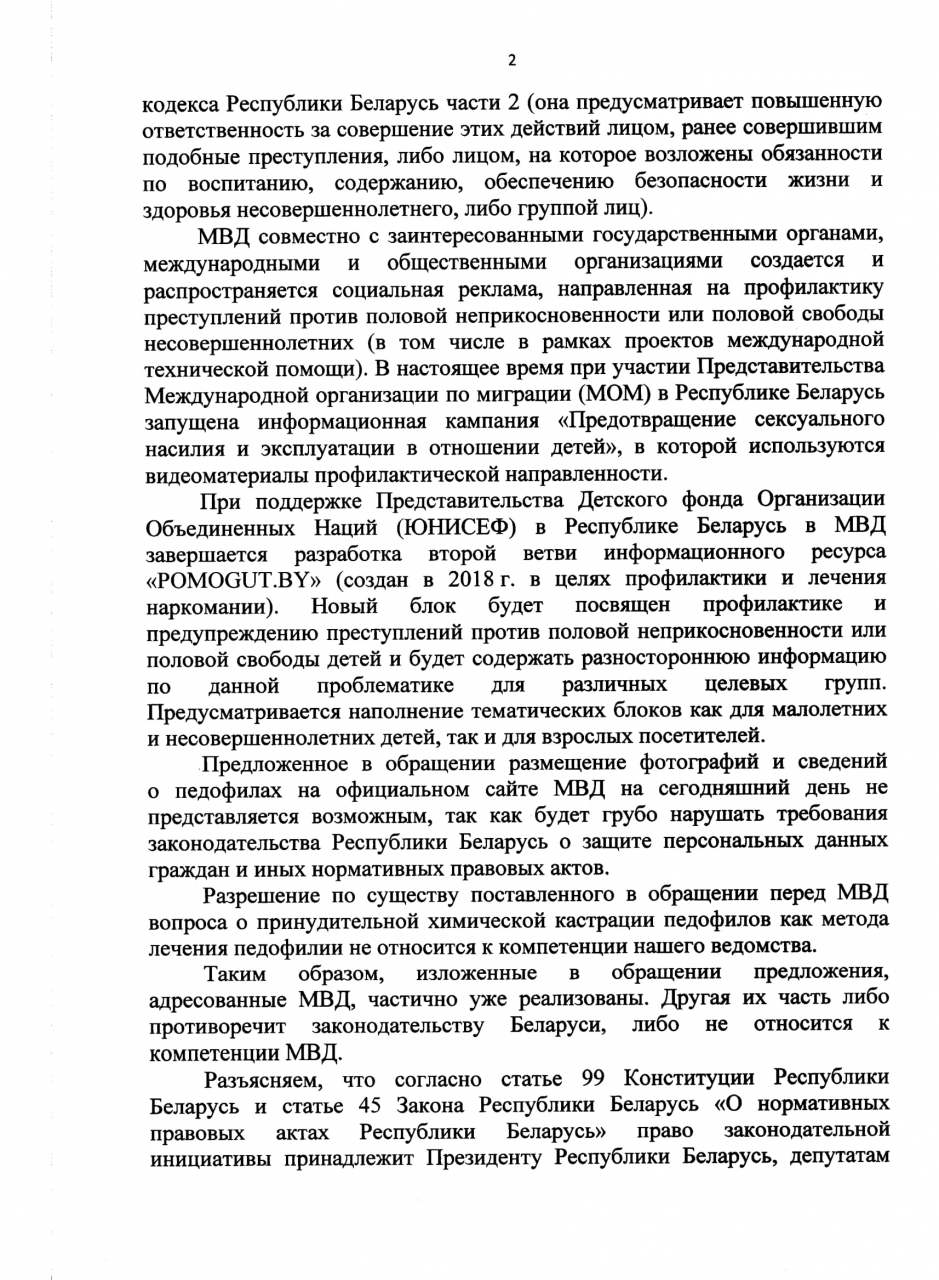Таким образом, на основании Положения о Министерстве внутренних дел Республики Беларусь, утвержденного Указом Президента Республики Беларусь от 04.12.2007 N 611, которое устанавливает, что МВД в пределах своей компетенции и в соответствии с законодательством обобщает практику применения законов и иных нормативных правовых актов, разрабатывает предложения по их совершенствованию, просим в пределах компетенции Министерство внутренних дел и лично Министра Шуневича И.А.:
