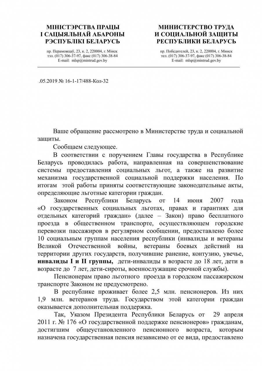 На наш взгляд, повышение тарифов на общественный транспорт бьёт по самым незащищённым слоям населения и тем тем, кто уже и так зачастую находится за чертой бедности, то есть пенсионерам. По нашему мнению отмена льгот и повышение тарифов на проезд - это не повышение транспортного налога или цены на бензин, это абсолютно антисоциальная мера, поэтому ходатайствуем о возвращении льгот на общественный транспорт одним из самых незащищённых слоёв населения - пенсионерам.