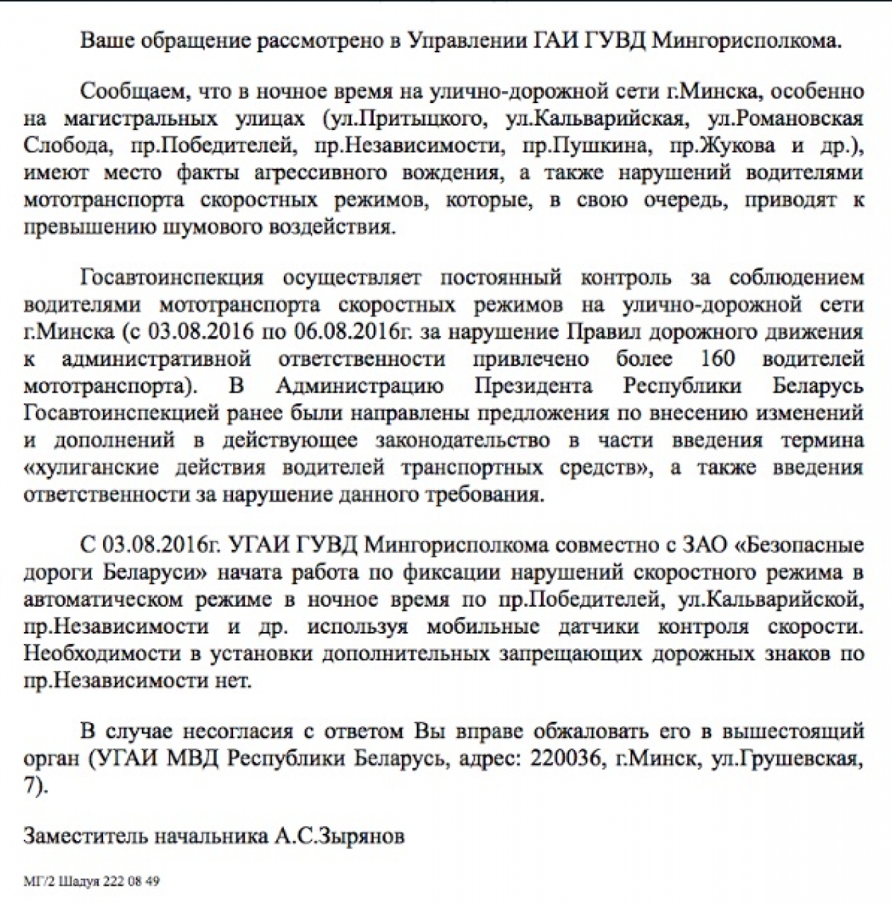 В Администрацию Президента направлены предложения по ужесточению ответственности за хулиганские действия на дороге. Начата работа по контролю скорости в ночное время в автоматическом режиме. Поэтому необходимости в установке дополнительных запрещающих знаков не усматривается.