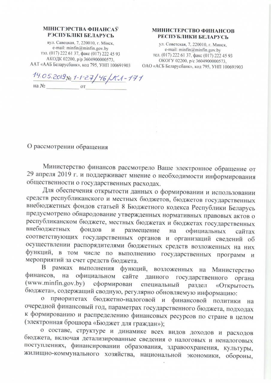 В целях повышения эффективности государственных расходов предлагаем сделать общедоступной детализированную информацию обо всех расходах государственных организаций - ведомств, учреждений, в том числе и образовательных. На наш взгляд это приведёт к повышению доверия граждан к государственной политике, в том числе налоговой, и к снижению государственных расходов на контролирующие ведомства.