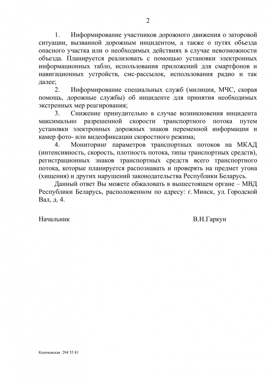 ГУВД Мингорисполкома инициирован проект по созданию интеллектуальной транспортной системы в городе Минске. Планируемые сроки реализации данного проекта: 2016-2019 год с учётом финансирования."