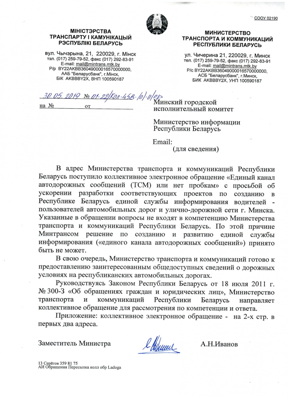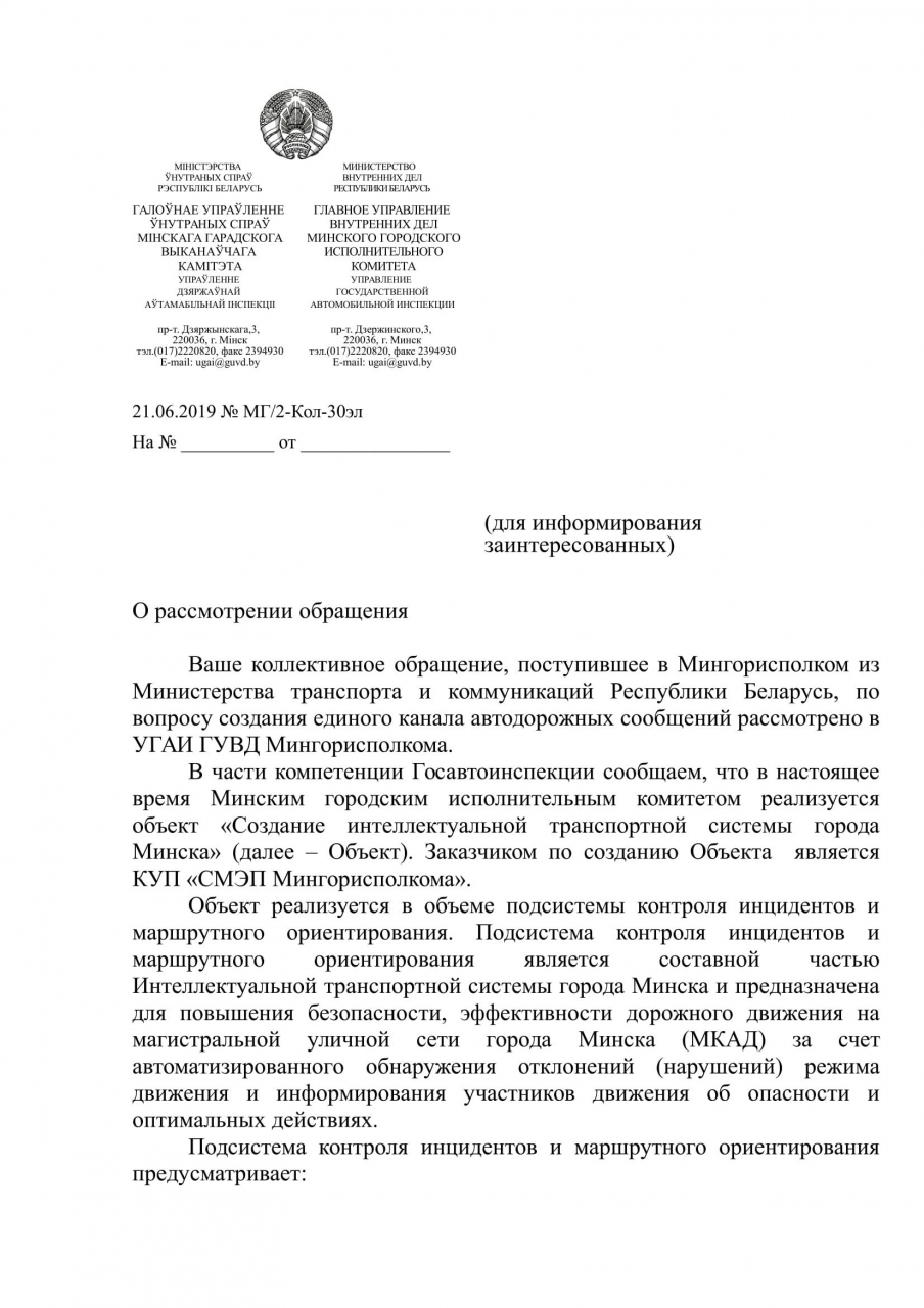 "Министерство транспорта и коммуникаций направило обращение в Мингорисполком, МВД и Мининформ для совместного рассмотрения вопроса и выработки совместной программы действий.