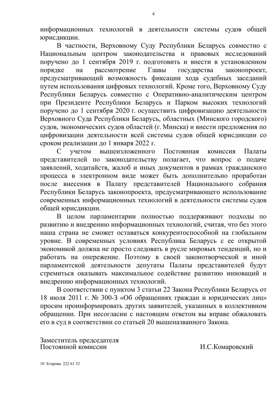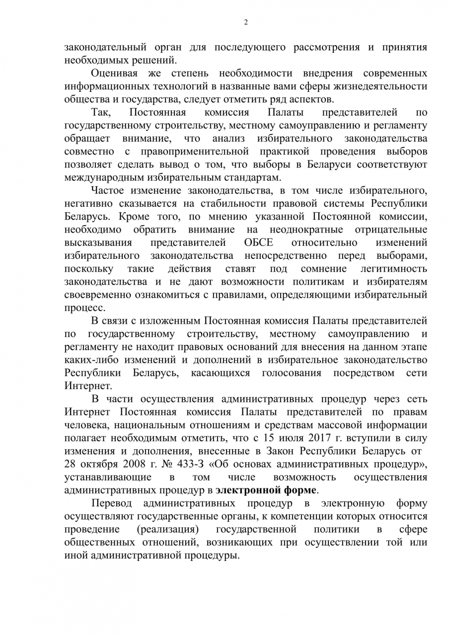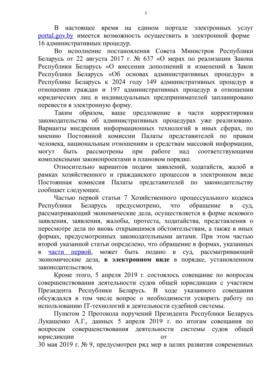 Учитывая, что Республика Беларусь считает себя IТ-страной, а информационные технологии не стоят на месте, значит и IТ-страна тоже должна идти в ногу с технологиями, предлагаем проработать законопроект, включающий в себя следующие варианты внедрения информационных технологий в административные и иные процедуры: