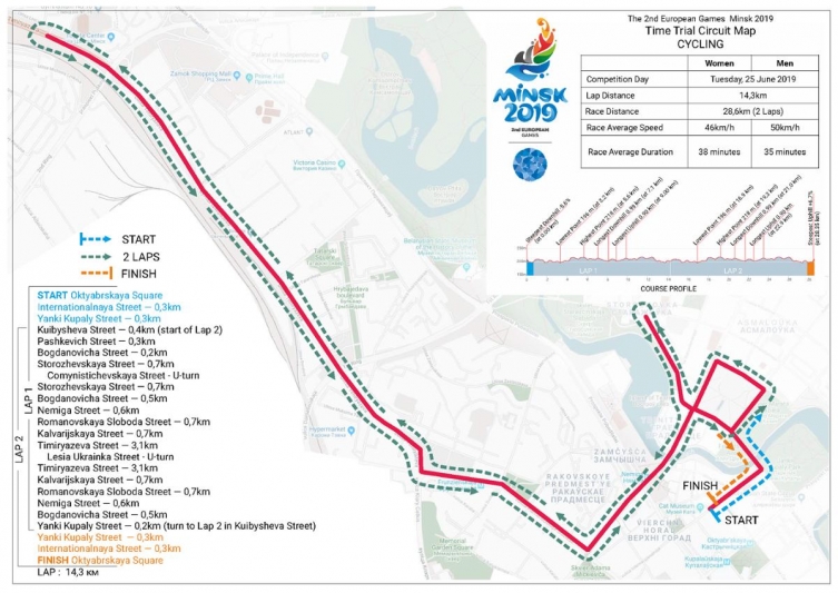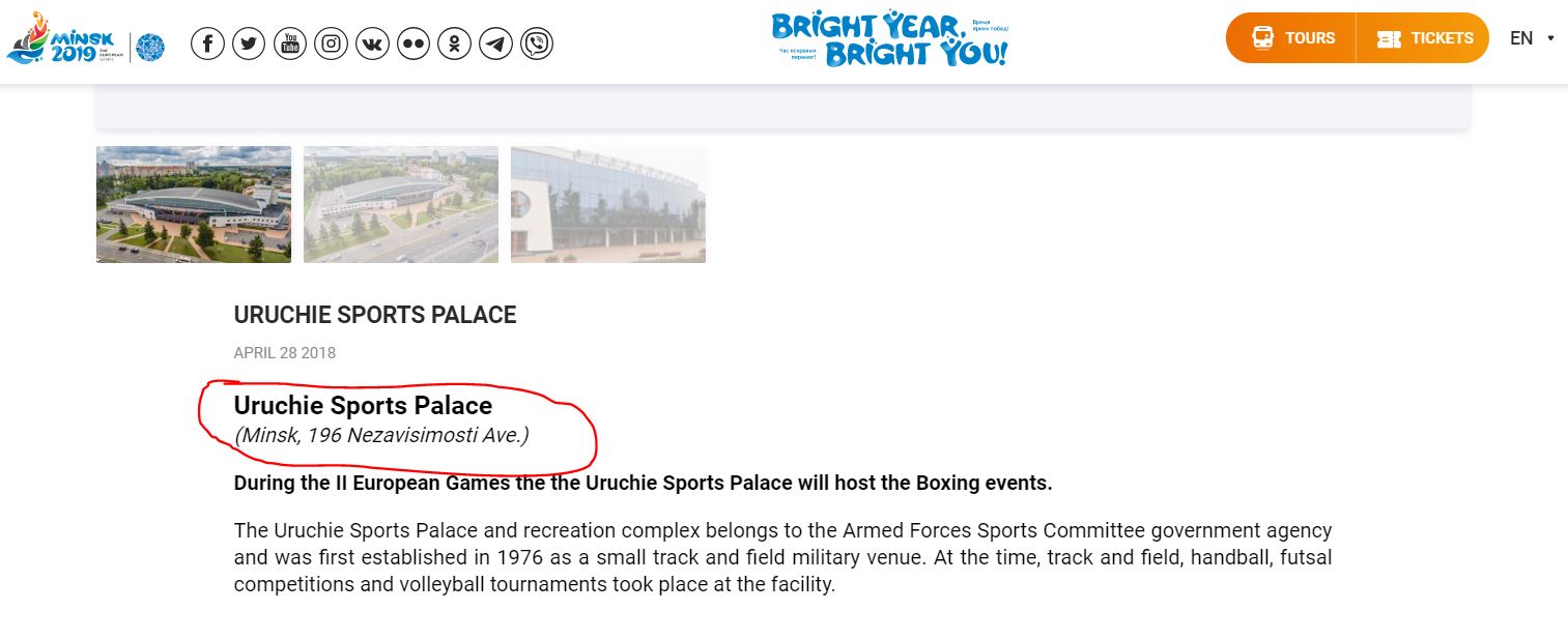 Аднак ужо зараз на афіцыйным сайце II Еўрапейскіх гульняў (minsk2019.by/en/) пры напісанні геаграфічных назваў парушаецца Інструкцыя па транслітарацыі геаграфічных назваў Рэспублікі Беларусь (далей — Інструкцыя), згодна з якой транслітарацыя геаграфічных назваў мусіць адбывацца з беларускай мовы. Так, на карце велагонак ідзе наступнае напісанне: Oktyabrskaya Square, Yanki Kupaly Street, Kuibysheva Street і г.д. Аднак згодна з Інструкцыяй мусіць быць: Kastryčnickaja plošča, vulica Janki Kupaly, vulica Kujbyšava і г.д. Транслітарацыя з рускай мовы сустракаецца ва ўсёй англійскамоўнай інфармацыі на сайце II Еўрапейскіх гульняў (minsk2019.by/en/).