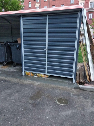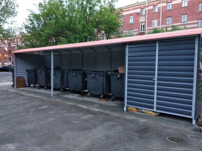 3) В установленной конструкции попросту нет места для контейнеров раздельного сбора мусора. Сейчас они обитают на дороге к гаражам