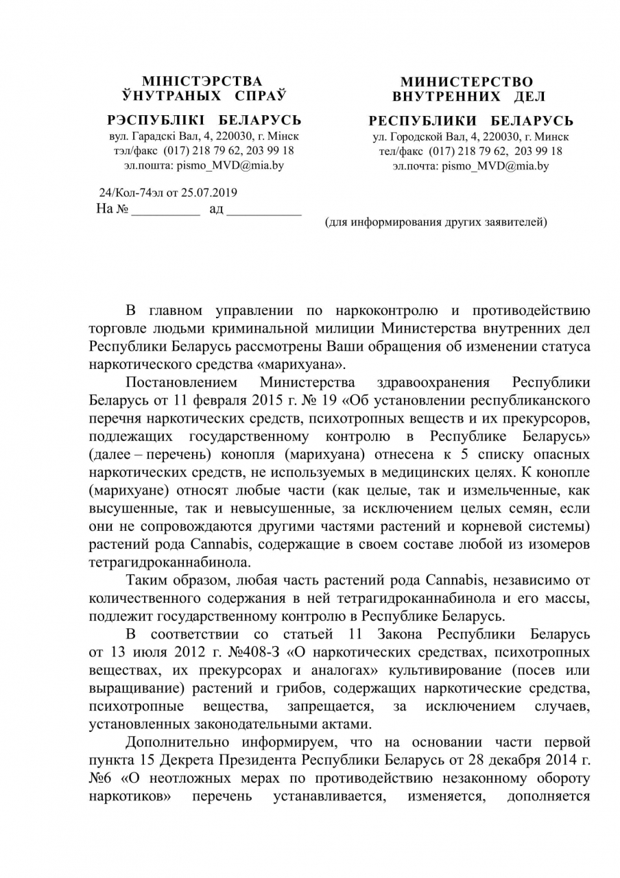 Мы, граждане Республики Беларусь, считаем правильным прекратить преследование потребителей и декриминализировать их действия в виду доказанной неэффективности антинаркотической кампании, осуществляемой компетентными государственными органами в отношении потребителей марихуаны и ее производных.