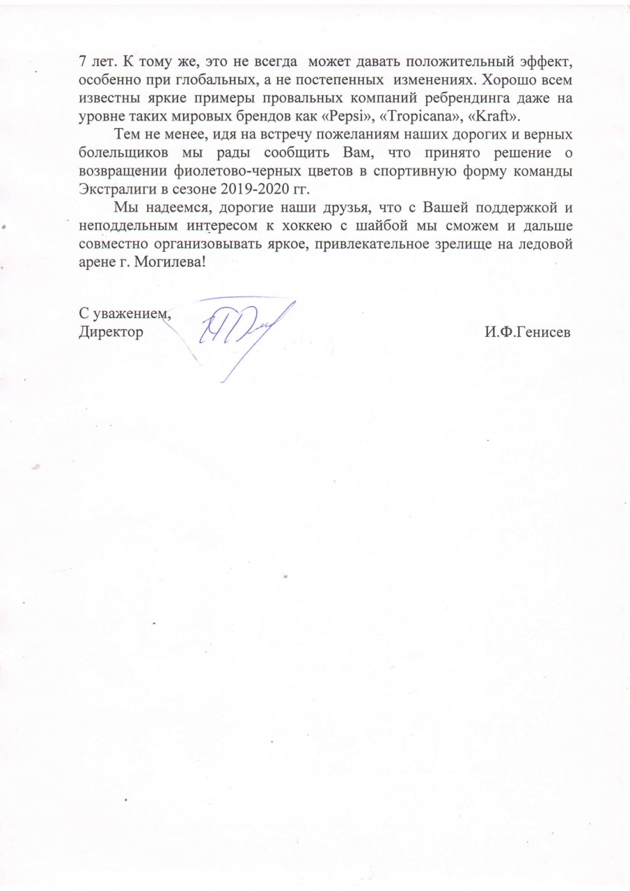 За возвращение чёрно-фиолетовых цветов ХК "Могилёв"