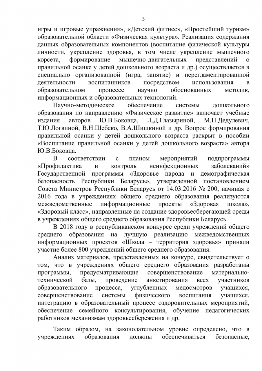 На законодательном уровне определено, что в учреждениях образования должны обеспечиваться безопасные, здоровьесберегающие условия при организации образовательного процесса. Учреждение образования вправе самостоятельно определять механизмы достижения указанной цели.