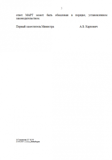 В связи с вышеизложенным и на основании пп. 5.1 п. 5 Положения о Министерстве антимонопольного регулирования и торговли Республики Беларусь,