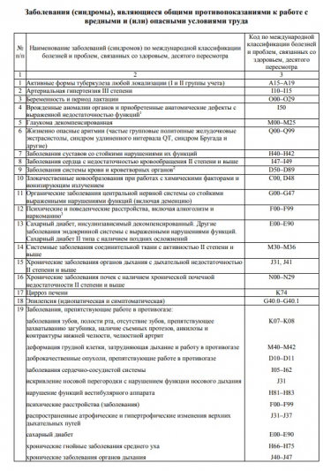 Например, в прилагаемом приложении № 4 "Заболевания (синдромы), являющиеся общими противопоказаниями к работе с вредными и (или) опасными условиями труда" указан перечень заболеваний (синдромов), являющихся общими противопоказаниями к работе во вредных и опасных условиях труда - то есть в любых! А этих самых вредных условий даже не десятки, а сотни по Постановлению.